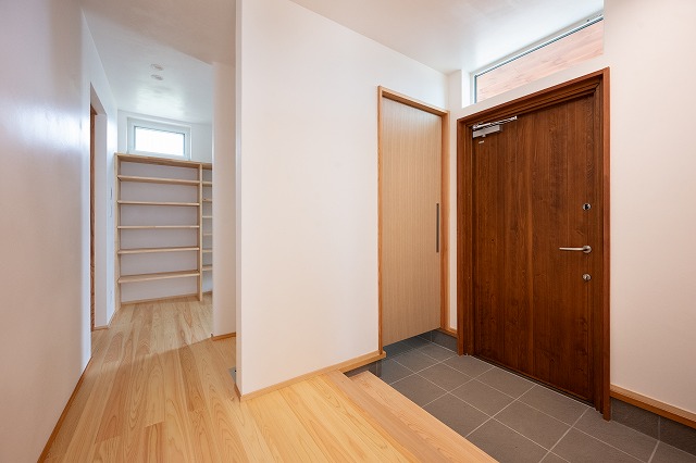 旧家の大黒柱は新家の玄関の上がり框として再利用し、家族の思い出も継承しながら、冬は暖かく、夏は涼しい快適な暮らしが始まります。